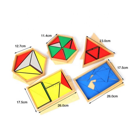 High Sale Wooden Montessori Mathematic Fraction Material Teaching Aids Learning Materials Set Mini Constructive Triangles
