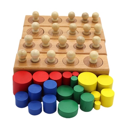 Preschool Child Wooden Montessori Teaching Aids Children Wood Socket Knobbed Cylinder Blocks Toy for Kids